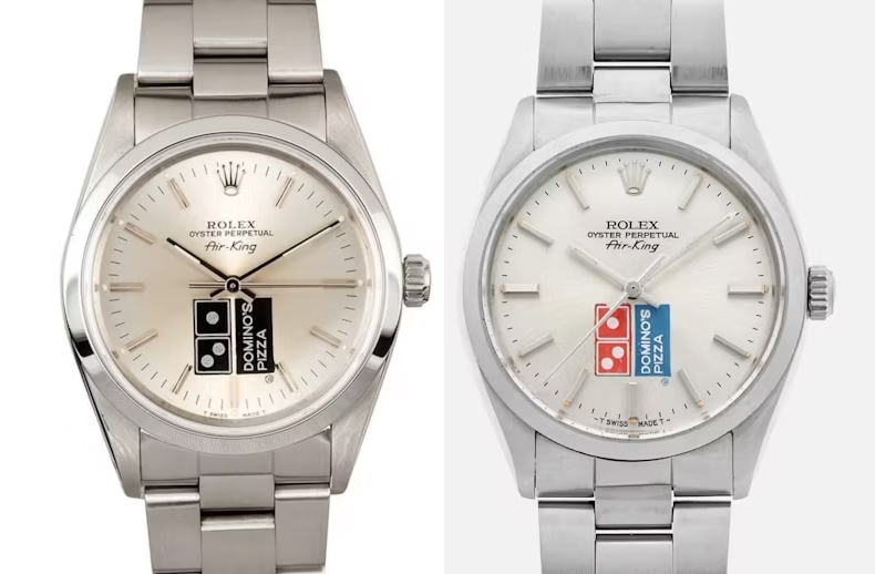 A couple of weeks ago I hopped the Amtrak from Chicago to Milwaukee to meet a couple of replica watches UK dealers. While walking from the Amtrak station to the Milwaukee Public Market, I decided to pick up a Domino’s pizza, not because I wanted one – though I can pretty much always go for a slice of pepperoni – but because I thought it’d pair nicely with a certain vintage Rolex. And so I walked across Milwaukee with a fresh, hot Domino’s pizza in hand (choose any two or more for $6.99!). In the 1970s, Domino’s founder Tom Monaghan started giving watches as awards to high-performing franchisees of his tasty pizza chain. In his fiercely named autobiography, Pizza Tiger, Monaghan recalls that he started the tradition in 1977 after a franchisee saw a Bulova with a Domino’s logo on his wrist and asked what he’d have to do to get AAA+ copy Rolex watches from Monaghan. Nowadays, the Domino’s dial Rolex is charming because we know it’s something that would never be done in 2024. “Turn in a $20,000 sales week,” Monaghan responded. And with that, the Domino’s Pizza Challenge was born. In the following years, Monaghan started giving out Seikos and then best selling Rolex replica watches to franchisees who met the sales mark. The first Domino’s Rolex was the Air-King ref. 5500, the long-running reference produced from 1957 through the 1980s (and my first love in vintage Rolex), with the pizza chain’s red-and-blue logo added at six o’clock. Eventually Domino’s upped the challenge, requiring four consecutive weeks of $25,000 in sales, but the challenge has remained since the 1970s. It’s difficult but doable, which means you can usually find a few dozen Domino’s Rolex replica watches for sale on the market at any given time. There are a bunch of relatively common corporate dial 1:1 Rolex replica watches: Coca-Cola, Hallmark, Winn Dixie, Pan Am, Anheuser-Busch, Chevrolet, and so on. But the Domino’s Rolex got popular over the past few years, mostly for the peculiarity of this most luxurious of watchmakers being subjected to an affiliation that triggers cravings for a greasy slice best consumed while imbibing or indulging in one of life’s other delicious vices. I mean, who besides a certain beleaguered former Vice President wants a Rolex with a Haliburton oil dial? But pizza? Everyone loves pizza. The first Domino’s Air-King ref. 5500 had a “big logo” at six o’clock. In these early years, Domino’s would also engrave the recipient’s initials as well as “TSM” (for founder Thomas Steven Monaghan) on the caseback. Even the papers are made out to “Domino’s Pizza.” It’s a bonus to find a Domino’s dial in a case that still has its full caseback engraving to legitimize its provenance and originality. This personalized caseback engraving later changed to an engraving of the Domino’s domino. This additional proof of provenance is such a bonus because old-school dealers will tell you that, back in the day, they’d even swap these Domino’s dials for standard silver dials and polish off that caseback engraving because no one wanted the logo of a crappy pizza chain on their best clone Rolex watches. Slowly and then all at once, the market changed, and people not only wanted these Domino’s dials, but were willing to pay a premium for them. Dealers were rummaging around in the back of every drawer for those old pizza dials, and if they found one, they’d plop it in any Air-King case they could find to print money out of thin air. Then, as with most things, it got really weird during the pandemic. Christie’s sold a couple of Domino’s dials for more than $20,000 in 2020 and 2021. Even more traded hands privately. It wasn’t uncommon to see a Domino’s Rolex sell for more than $15,000 – like here, here, or here. In 1989, top Rolex fake watches phased out the 5500 for the Air-King ref. 14000. As with other models that transitioned from four-digit to five-digit references around this time, the 14000 is mostly the same as its predecessor, but with an updated movement and sapphire crystal. In the first year or so of ref. 14000 production, Domino’s Air-Kings also stayed the same, with a similar big logo at six o’clock. After that, we see a brief switch to a black logo – the same big logo as before, just monochromatic. These only seem to appear for a year or so, which means it’s much more rare. But let’s be honest: the colorful, cheesy Domino’s logo is what we want. Realizing the error of their ways, Domino’s and cheap fake Rolex watches soon switched back to a colorful “small logo.” It’s the same red-and-blue logo as before, shrunk down to a slightly more digestible size. Then, in the mid-1990s, we get to the tilted logo, seen in both the ref. 14000 and the ref. 14010, the same Air-King, just with an engine-turned bezel (this is the logo seen in photos throughout this article). Despite my affection for the ref. 5500, the tilted logo is my favorite flavor, the perfect amount of playful for America’s favorite pizza delivery chain. In 2000, Rolex replaced the 14000 references with the 14000 and 14010m – same as before, just with an updated caliber 3130. In the mid-2000s, tragedy struck. Perfect replica Rolex watches retired our beautiful baby, the Domino’s dial, instead placing a steel logo on the first full bracelet link instead. It’s boring and comparatively clunky compared to the bold logo on the dial that we enjoyed for all those years. In 2014, Swiss Rolex fake watches discontinued the simple Air-King, and by the time it introduced the updated ref. 116900 in 2016, it was much too busy and confused for any Domino’s logo. Instead, Domino’s began giving the ref. 114200 (34mm), 116000, followed by the 126000 (36mm), to high-performing franchisees. You’ll also find smaller OPs with Domino’s logos. Grab a Slice Things have cooled down significantly since the days of easy money and $20,000 pizza dial cheap Rolex r